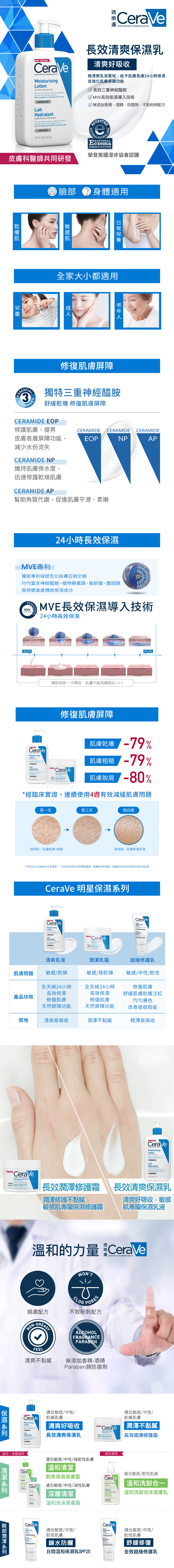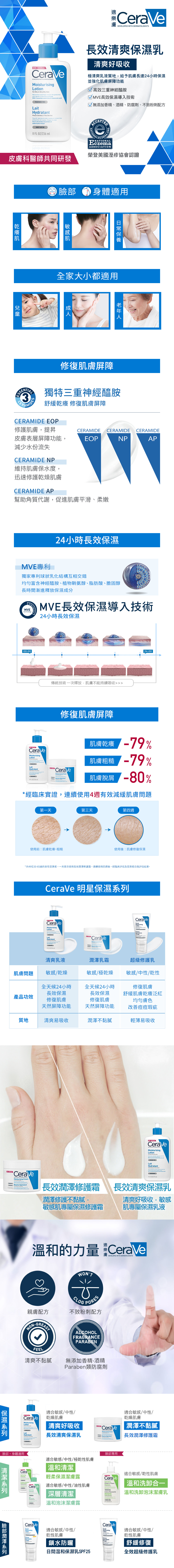 - 質地清爽好吸收24小時臉部及身體長效保濕保養